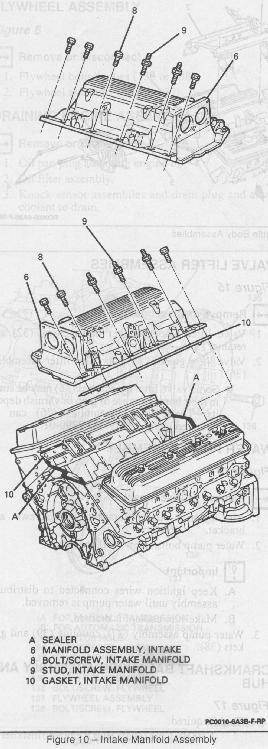 - Remove passenger side exhaust manifold assembly. Don't lose the spacers. The Helms manual recommends you put the bolts back in the same places they came from. (Refer to diagram )