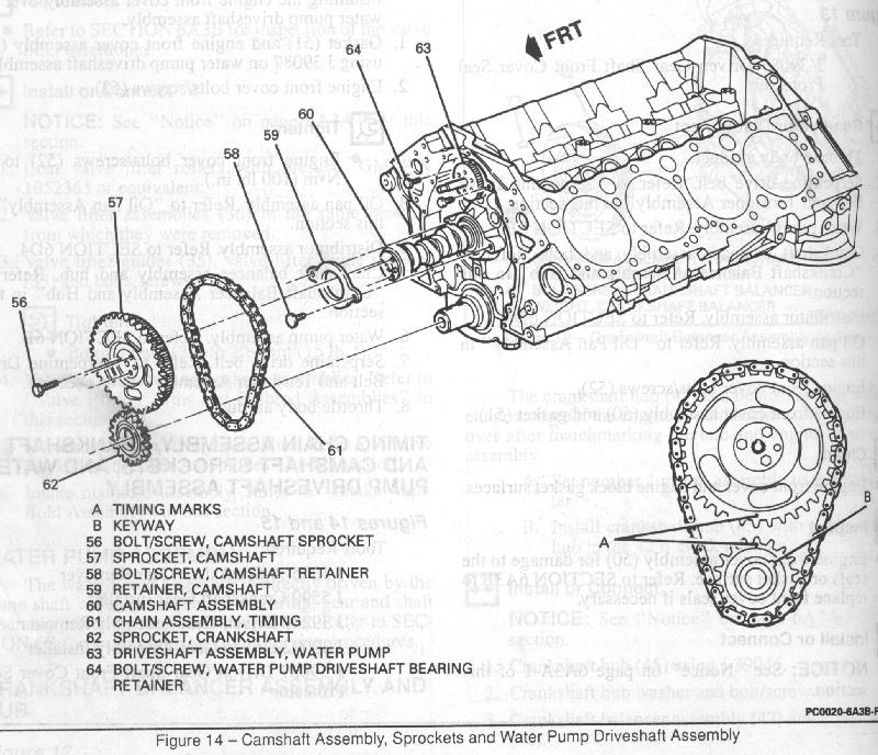 - Now for the hard part - putting on the timing cover. Make sure to use the proper gasket. The hard part is actually getting the timing cover on right and without ripping the water pump driveshaft seal. J39087 can be used to protect it. Other creative methods can also be used - for example, the seal can be installed *after* the cover is on. Some have used other objects to protect it. Put some time into this step, make sure the seal on the cover is good. Take special care with the oil pan gasket. If you don’t feel comfortable, use high temp RTV. (Refer to diagram )